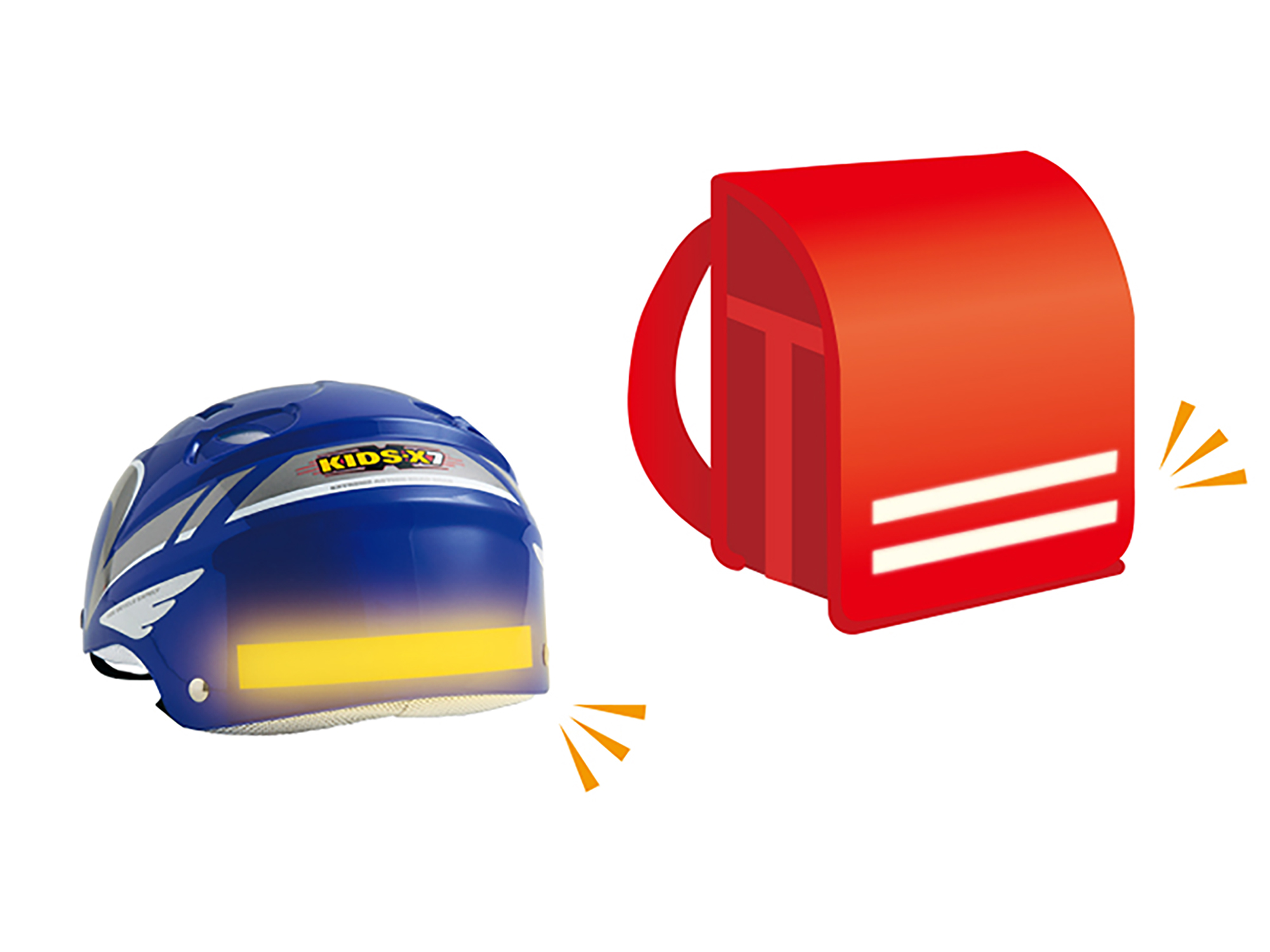 - 夜間はヘッドライト、 懐中電灯などで光ります。