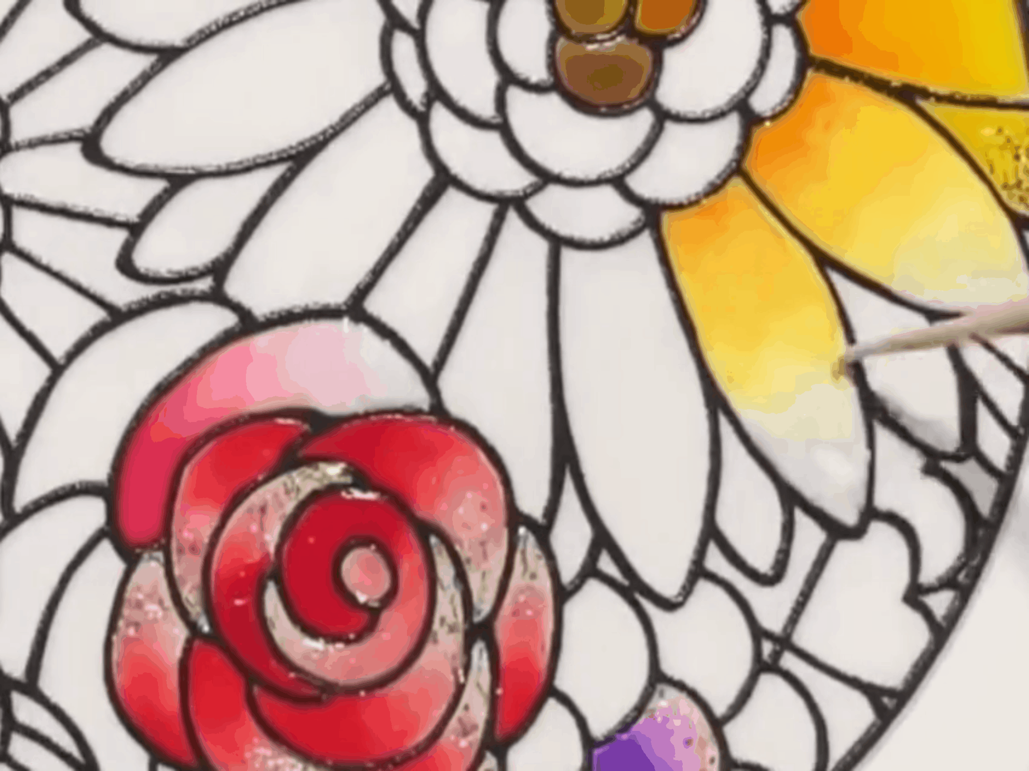 透明シールの黒い枠線の中をグラスデコで塗るだけで素敵なアートシールが完成します。