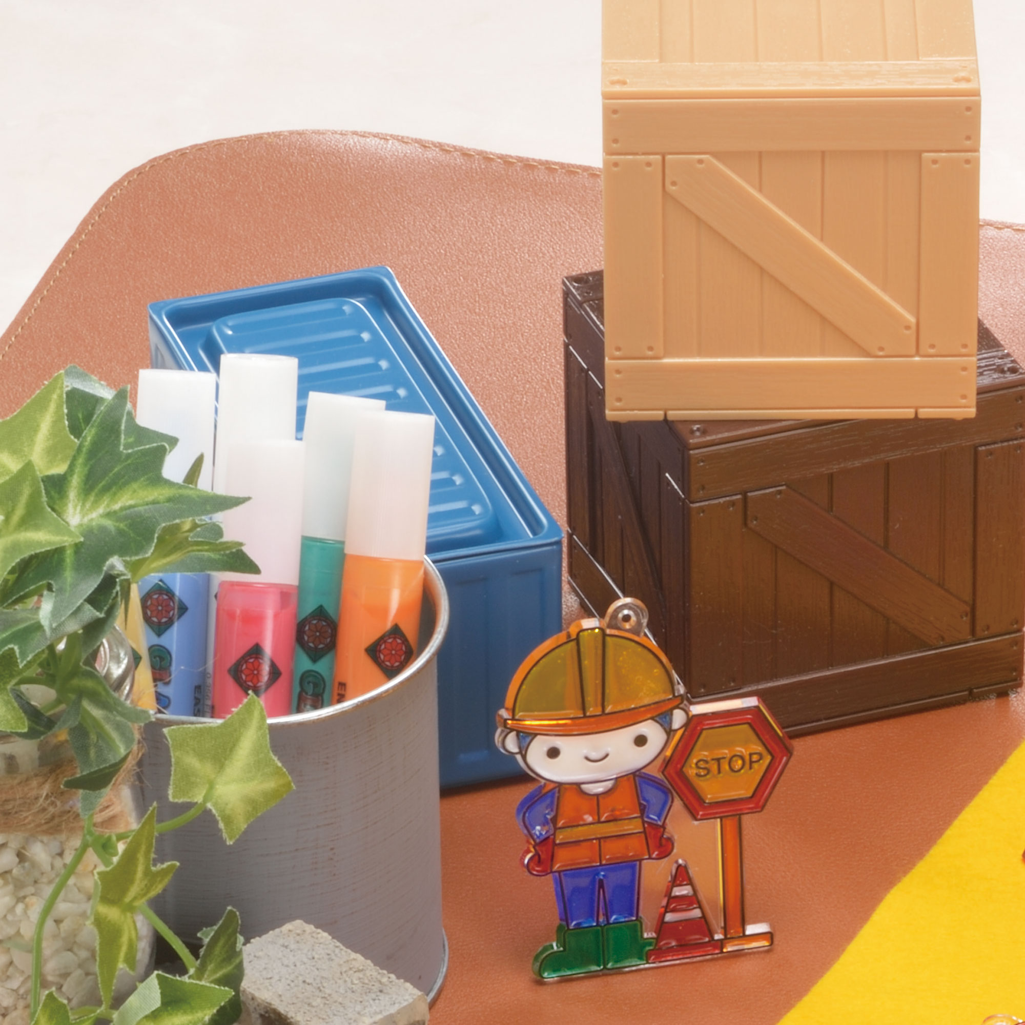 付属の透明プレートにお好きな色のグラスデコを塗って乾かすだけでカラフルなオーナメントが仕上がります。
